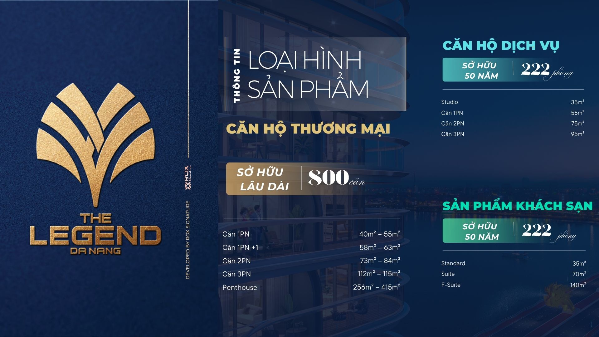 The Legend Danang không chỉ là nơi để ở, mà là một tuyên ngôn sống dành cho những ai yêu sự đẳng cấp, tinh tế và tiện nghi. Với triết lý phát triển “Sáng tạo – Thanh lịch – Thân thiện – Tiện nghi”, từng đường nét kiến trúc đều được chăm chút để tôn vinh gu thẩm mỹ và phong cách sống của chủ nhân.