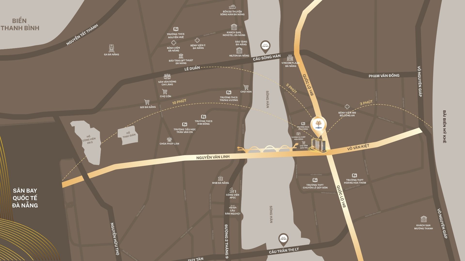The Legend sở hữu vị trí đắc địa hiếm có bên sông Hàn hướng ra cầu Rồng – một biểu tượng của thành phố Đà Nẵng
